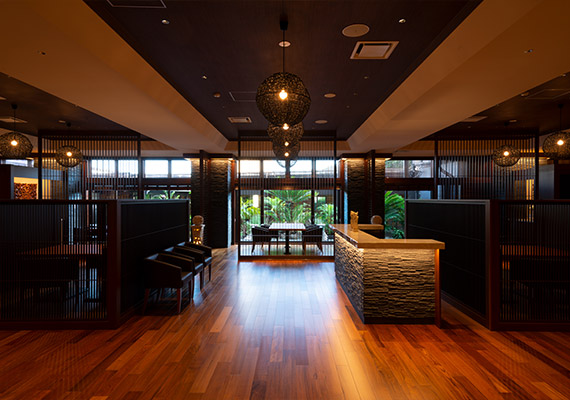 落ち着きのあるインテリア、自然をモチーフにしたレリーフや中庭の緑が、非日常へと誘います。